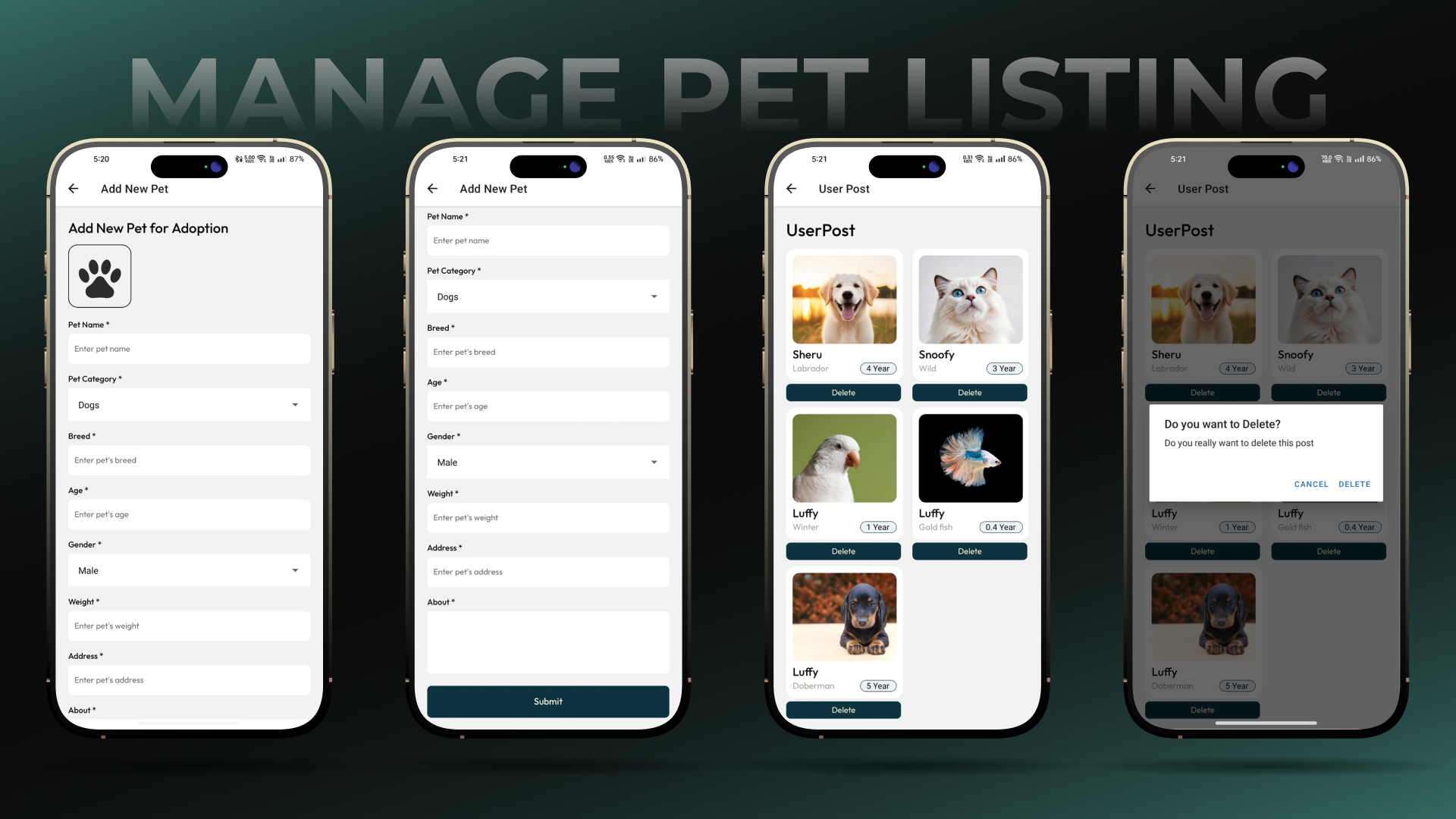 This project demonstrates expertise in cross platform mobile development while contributing to animal welfare and social good.